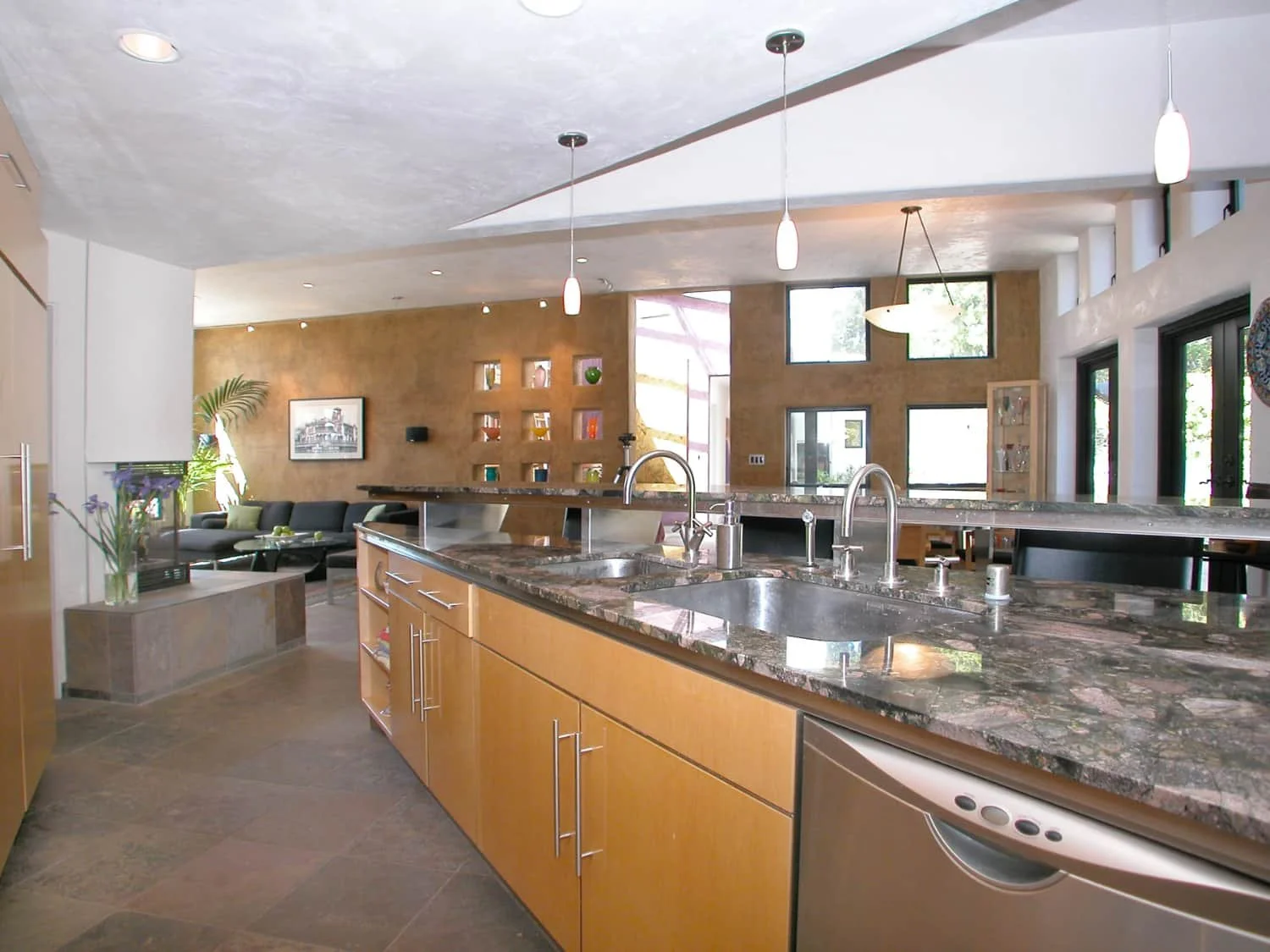 Inspired by the Mexican Landscape Architect, Luis Barragan, this house is about walls, redefining the interior and exterior. The original house was split in two, with one side higher, addressing the lap pool, and the other lower side, the rolling backyard. By creating a one-level great room that spanned both sides of the house, we balanced the light and the experience of the site and its two very different views. Colored stucco walls, remodeled lap pool and exterior courtyard, slate floors with radiant heat, tall ceilings.....an amazing entertaining house.