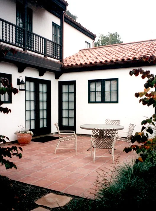 This house speaks to the many Spanish style homes found in California. With its white stucco and clay tile roof, interior entrance courtyard, burnished sautillo tiles (over radiant heat), wrought iron guardrails, and rafter ties, it is an ode to beautiful traditional details.